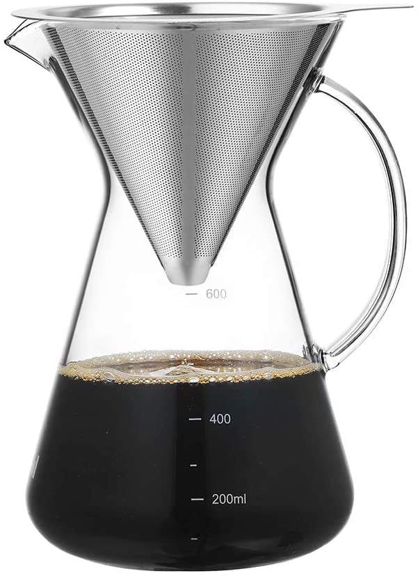 Stlend Pour Over Coffee Maker Set 4 Cup Borosilicate Glass Carafe With Reusable Stainless Steel Paperless Filter Dripper Manual Coffee Dripper For Home 21 Oz 600 Ml Walmart Com